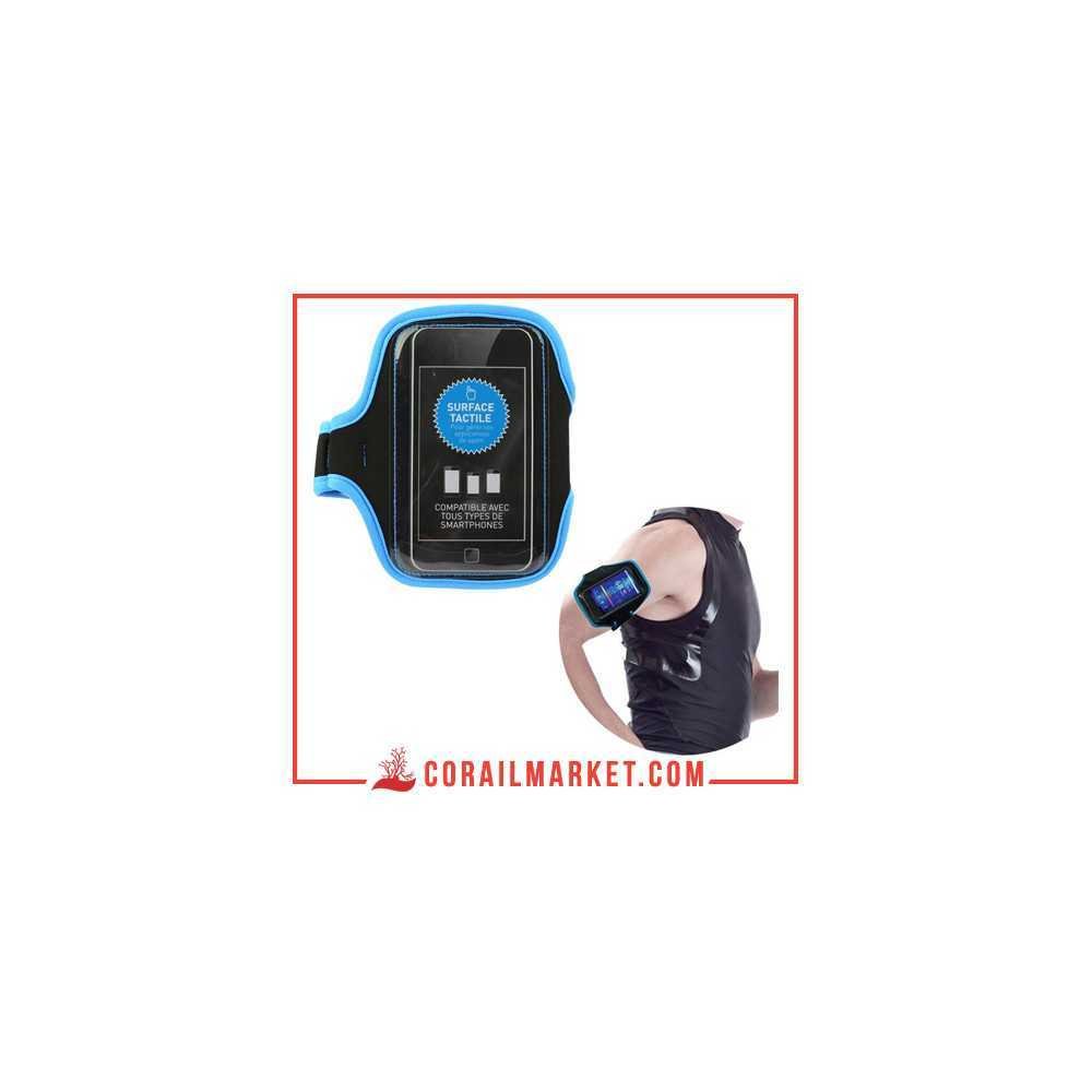 Brassard muni d'une fenêtre de rangement pour smartphone.
